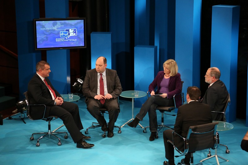 Richard Montford Boulter, Marco Westphal, Dr. Angela Maas (Moderatorin), Prof. Dr. Klaus F. Zimmermann, Philipp C. A. Klais