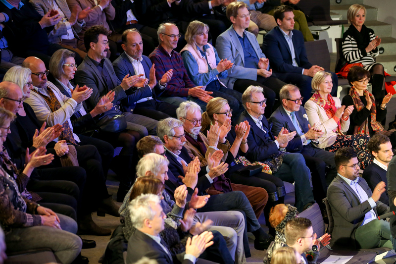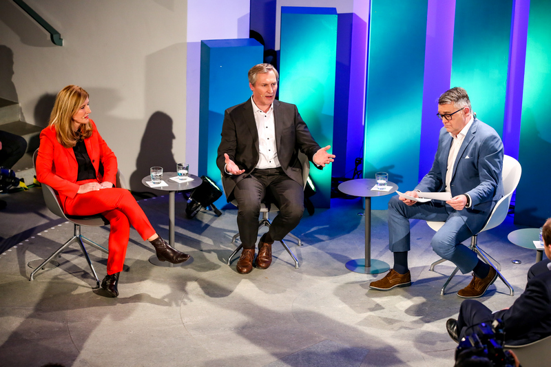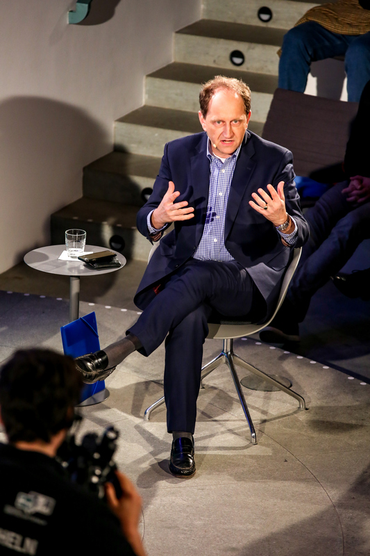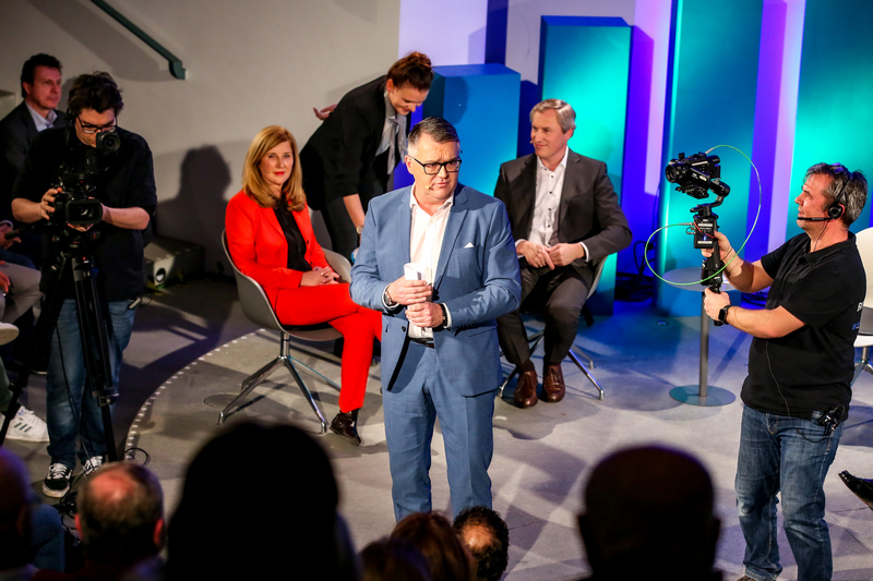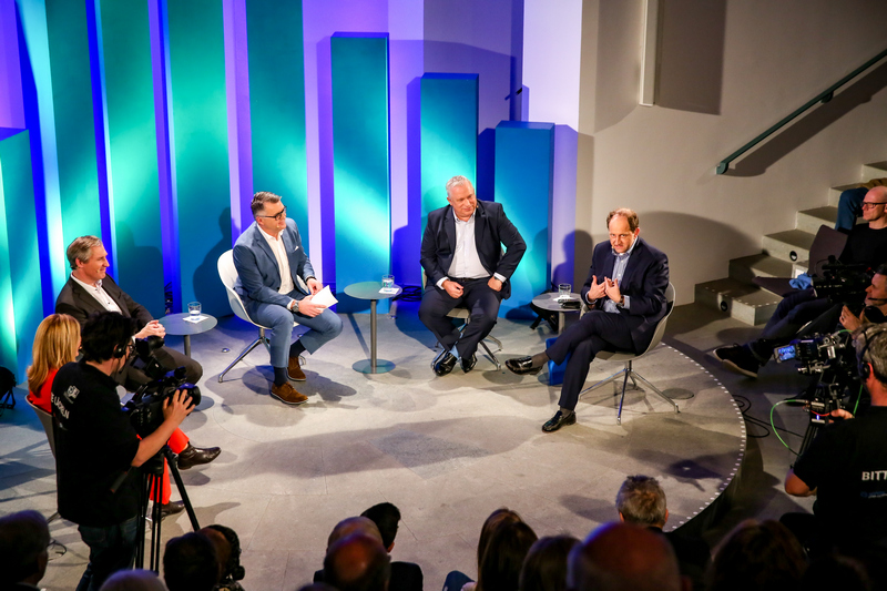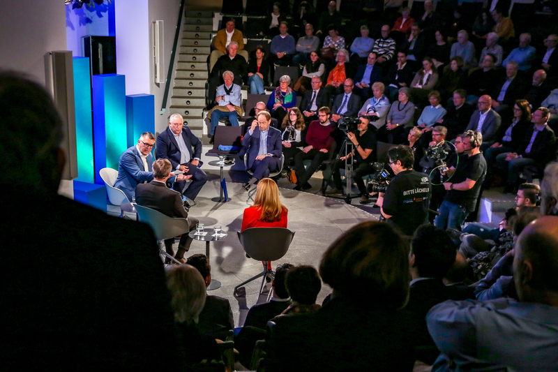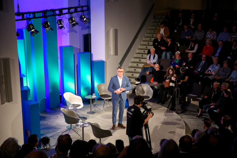 Zur Premiere des Bonner Wirtschaftstalk am neuen Standort im Auditorium des KUNSTMUSEUM BONN talkte Moderator Christian David mit den Podiumsgästen über die europäische Integration und deren wirtschaftliche Bedeutung.