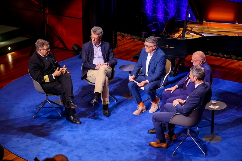 Konteradmiral Roland Obersteg, Prof. Dr. Hubertus Bardt, Christian David (Moderator), Wolfgang Döring, Dr. Mariucci Marcello